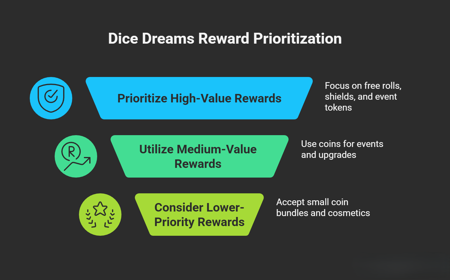 - Use them efficiently by prioritizing shields, event tokens, and high-value rewards